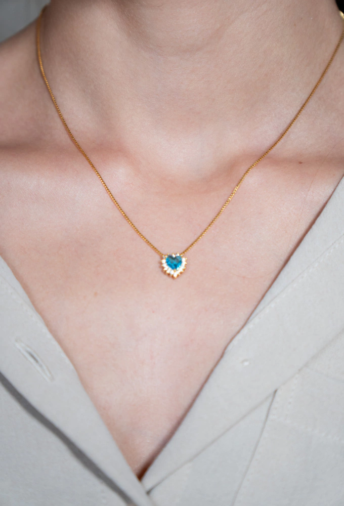 O Conjunto Coração Turquesa Cravejado, banhado a Ouro 18K de alta qualidade, é a combinação perfeita entre cor, brilho e sofisticação.